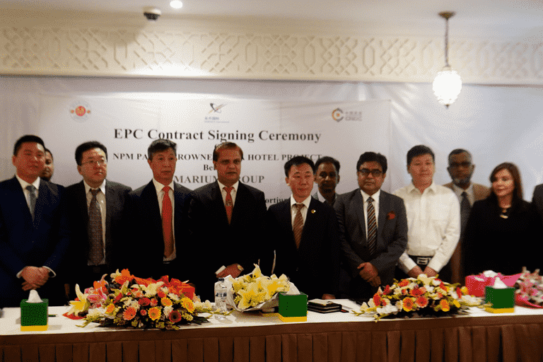 2022年11月14日,孟加拉国马里姆集团与北方国际和中国铁设联合体在达卡市签署了孟加拉帕亚拉皇冠酒店项目EPC总承包合同。孟加拉国文化部、内政部官员、新闻媒体及社会各界60余人出席了活动。