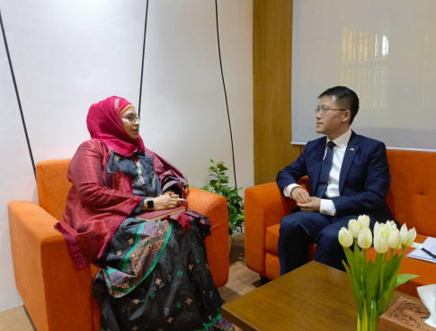 2024年6月20日,宋扬参赞会见孟加拉国财政部经济关系局辅秘、新任亚洲司司长米拉娜。双方就推进中孟经贸领域合作深入交换意见。葛晓峰一秘参加。
