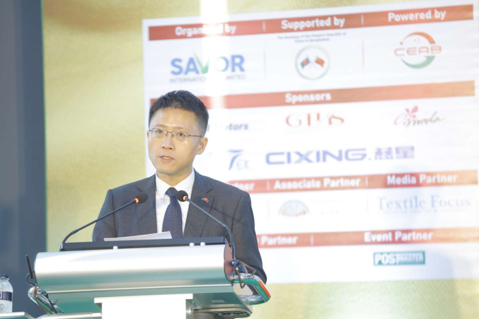 2025年10月24日,宋扬参赞出席孟加拉国中资企业协会主办的首届中孟绿色纺织品展会专题论坛并致辞。张健三秘参加。