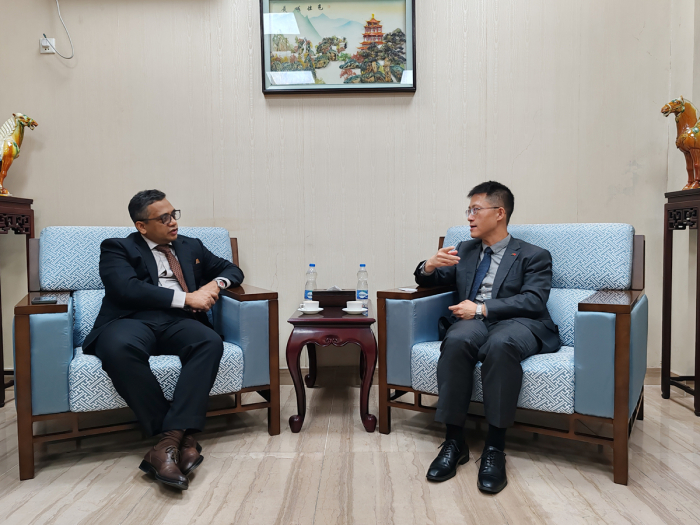 2025年10月27日,宋扬参赞会见汇丰银行孟加拉分行跨国事务部总经理安达利布,双方就加强两国商界和金融合作进行交流。张鹏飞三秘参加。
