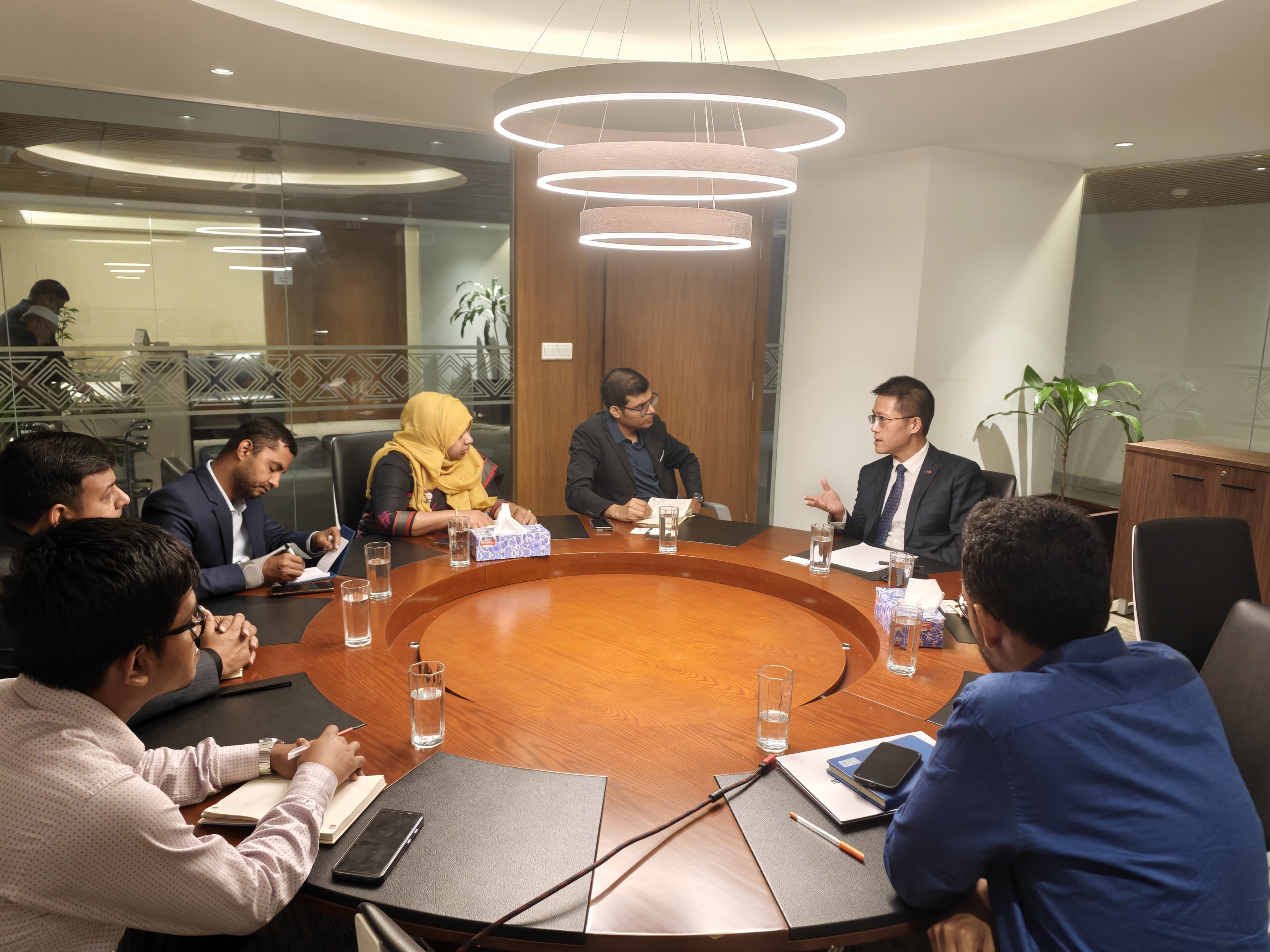 2026年4月9日,宋扬参赞与孟加拉国投资发展局执行委员纳海举行工作会谈,深入探讨加强两国投资合作有关举措。宋伟利三秘参加。