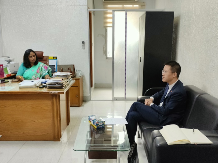 2026年4月8日,宋扬参赞会见孟加拉国商务部自贸协定司司长阿伊莎,就深化两国贸易便利化机制合作交换意见。白诏晞三秘参加。