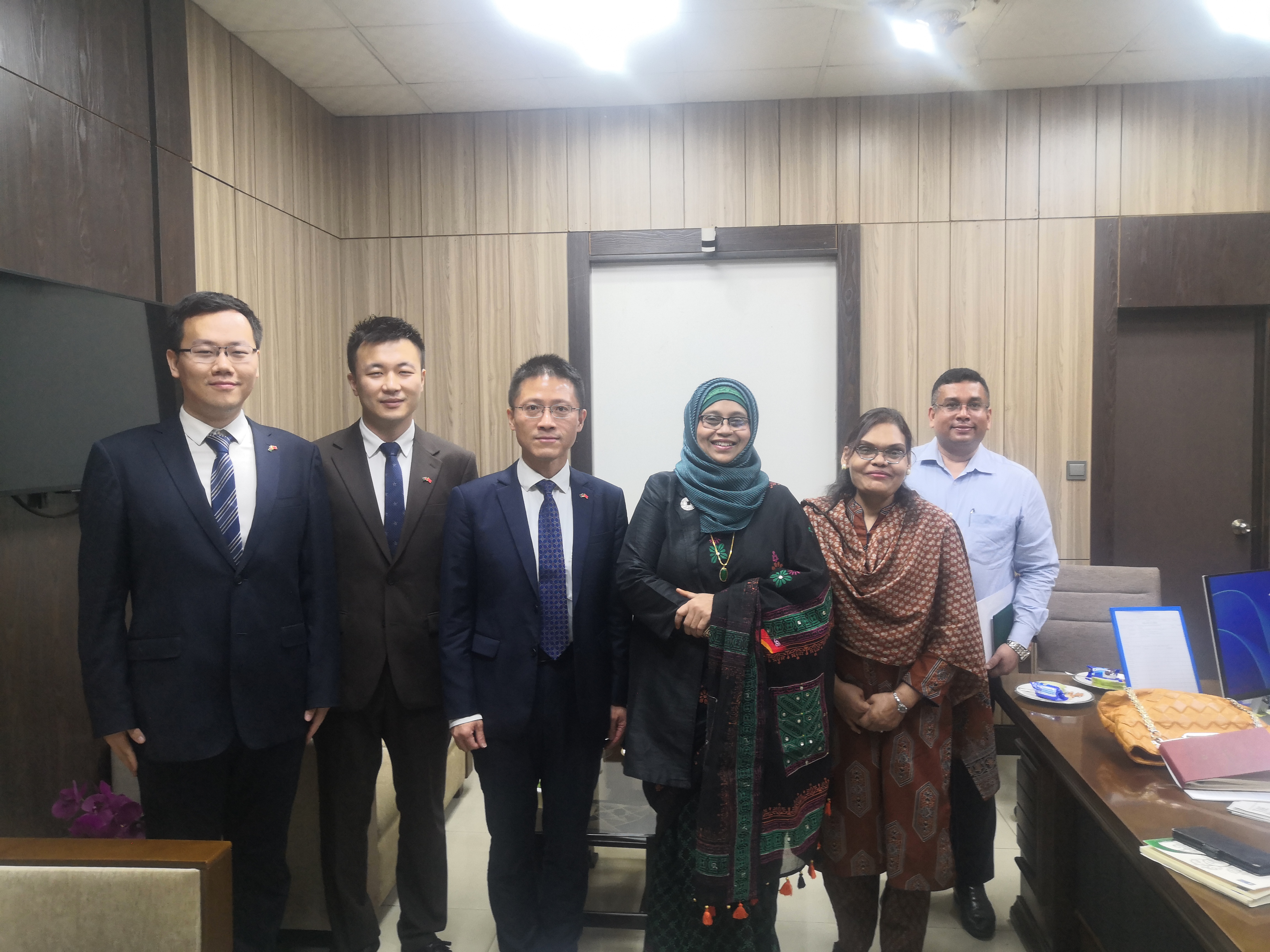 2026年3月31日,宋扬参赞与孟加拉国财政部经济关系局辅秘兼亚洲司司长米拉娜举行工作会谈,就两国经贸领域合作事项广泛交换意见。宋伟利三秘、文锦华随员参加。